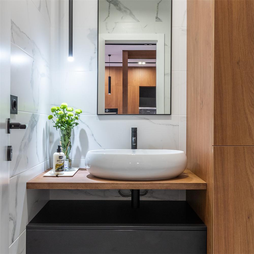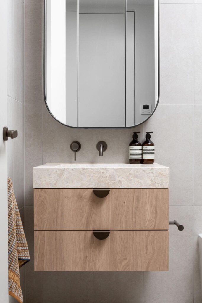 Ever noticed how wood makes a bathroom feel less… cold? Exactly.