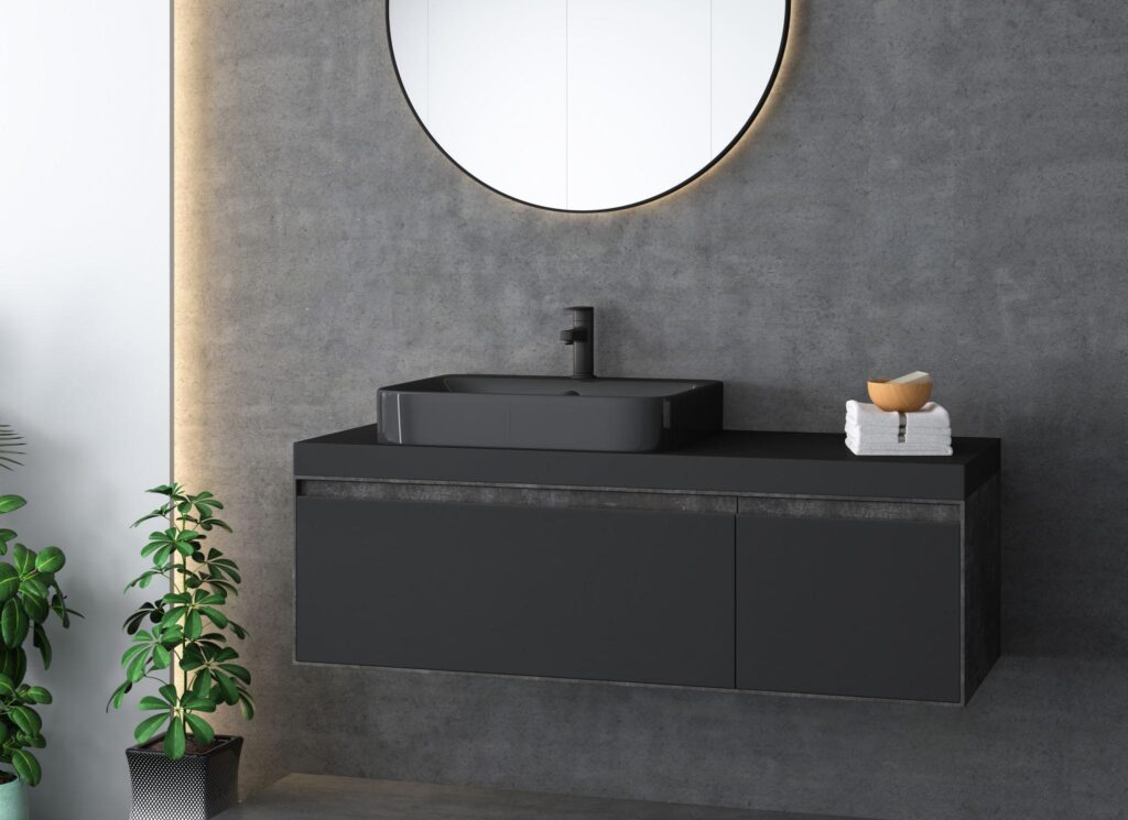 13. Floating Concrete Vanity (Modern Industrial Luxe)