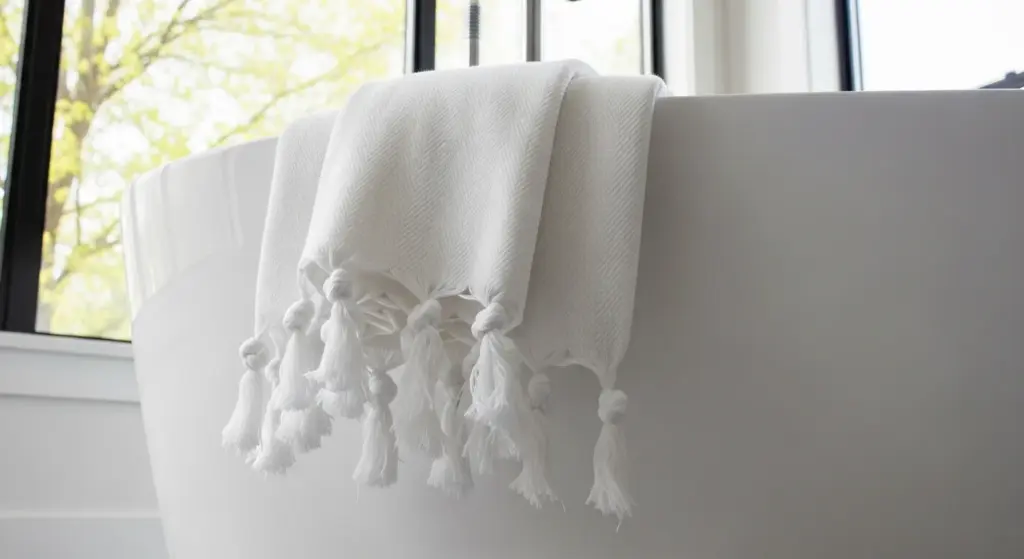 - Styling Details: Hang these on a hook or drape them over the side of a bathtub where the tassels can hang freely.