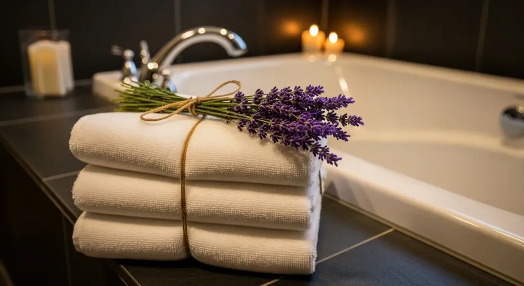 - Styling Details: Place dried lavender sachets between towel folds to infuse them with a calming, natural fragrance.
