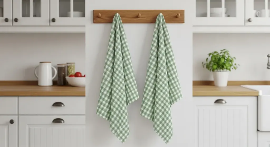 Gingham is a classic pattern that always feels fresh and appropriate for the sunny days of spring. Whether in the kitchen or bathroom, gingham check towels add a sense of nostalgia and cottagecore charm. Choosing classic colors like blue and white or soft green and white keeps the look light and cheerful.
