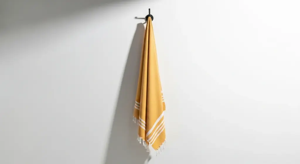 - Visual Cues: A long, thin towel draped from a high point, featuring simple stripes or a flat weave.