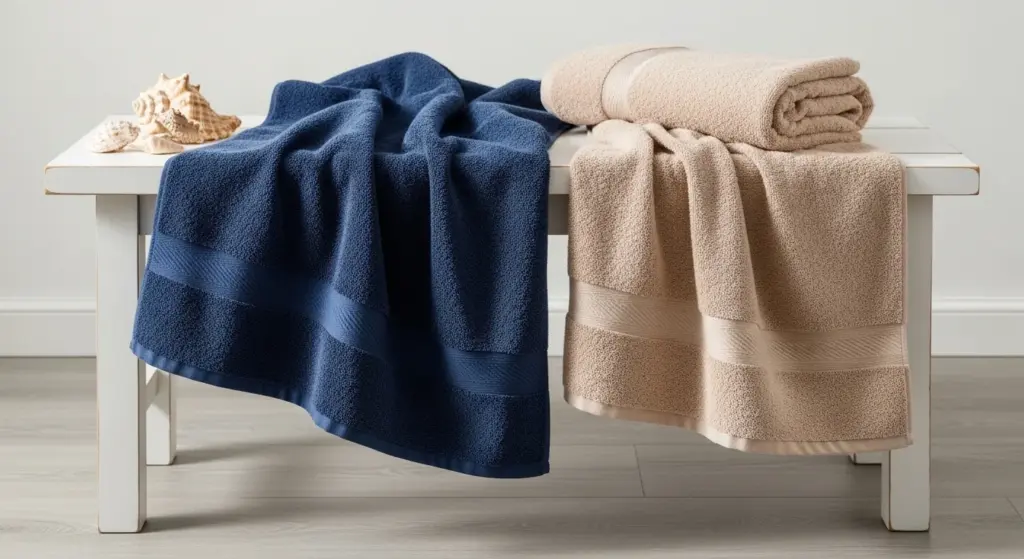 - Styling Details: Use a towel ladder or layered rack to show off both colors simultaneously.