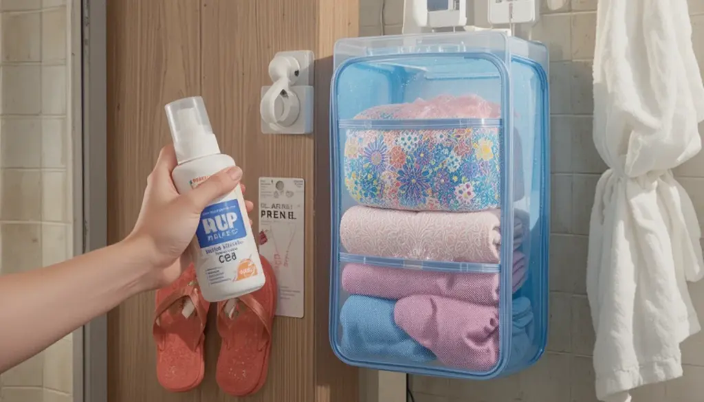 - Wrinkle-release spray (tiny bathrooms = no ironing space)