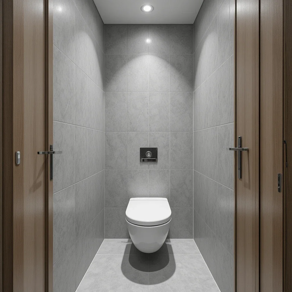 A clean seamless wall design paired with an ultra-slim toilet creates a sleek and uncluttered look. Matching tones reduce visual breaks. Minimal hardware enhances simplicity. This design is perfect for extremely small bathrooms.